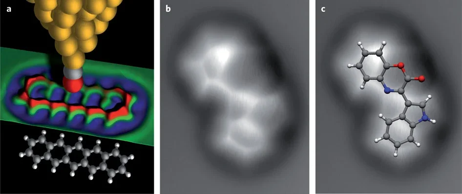 qPlus atomic force microscope image of molecules showing their bond structure. Reference