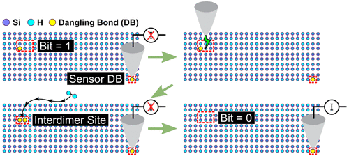 Taleana Huff, Hatem Labidi, Mohammad Rashidi, Lucian Livadaru, Thomas Dienel, Roshan Achal, Wyatt Vine, Jason Pitters, Robert A Wolkow. Nature Electronics 1, pages 636–643 (2018)